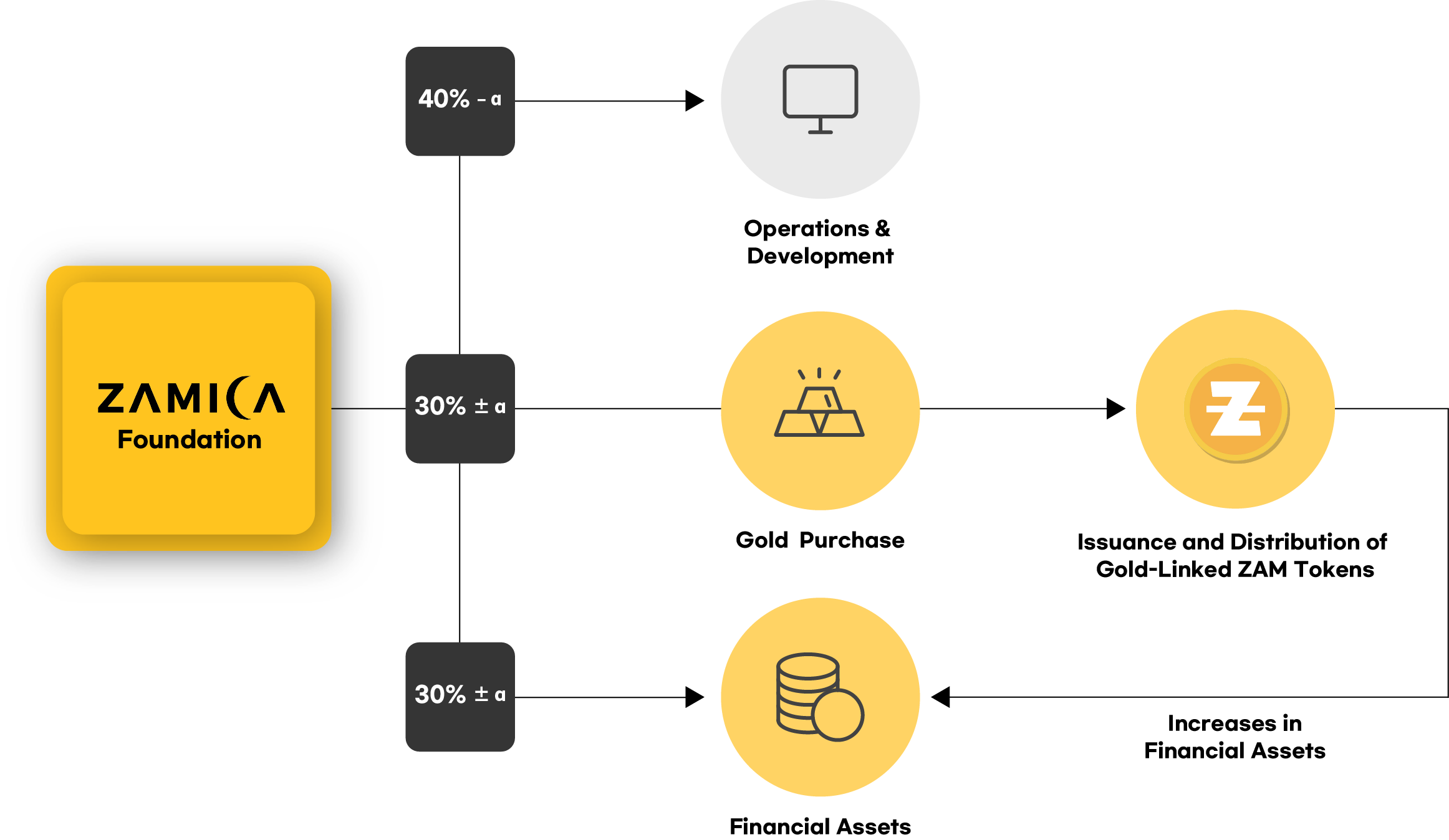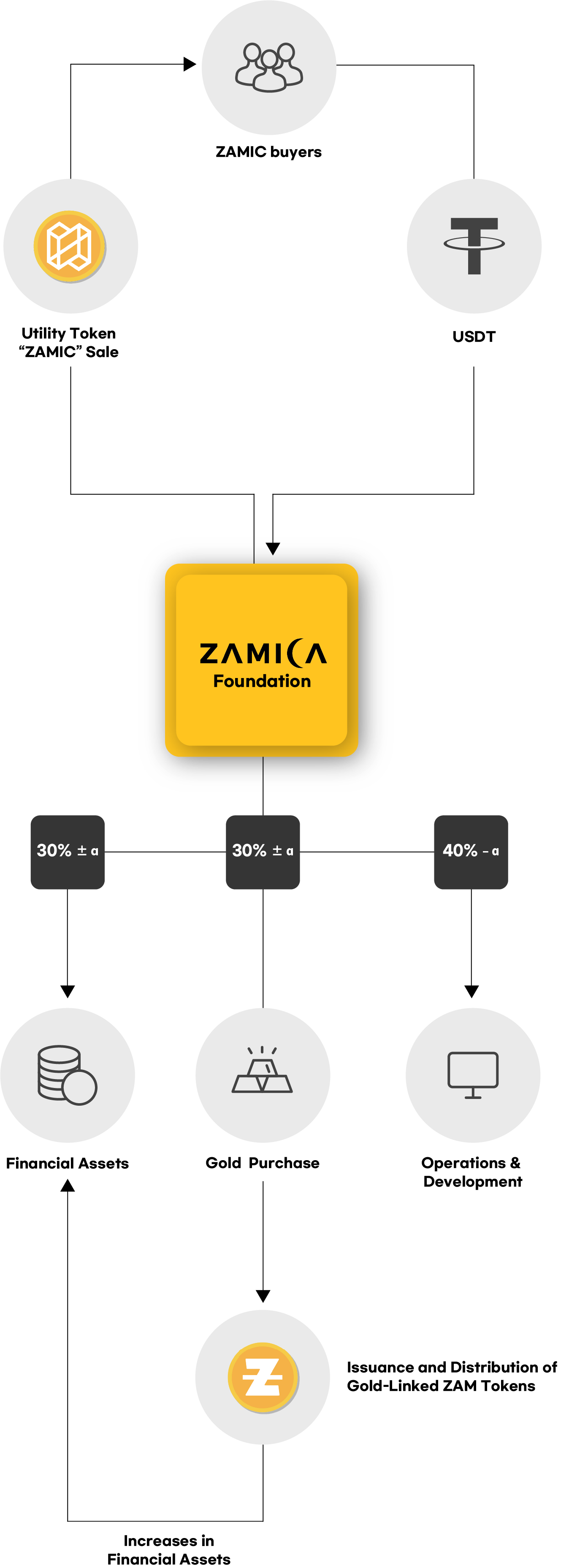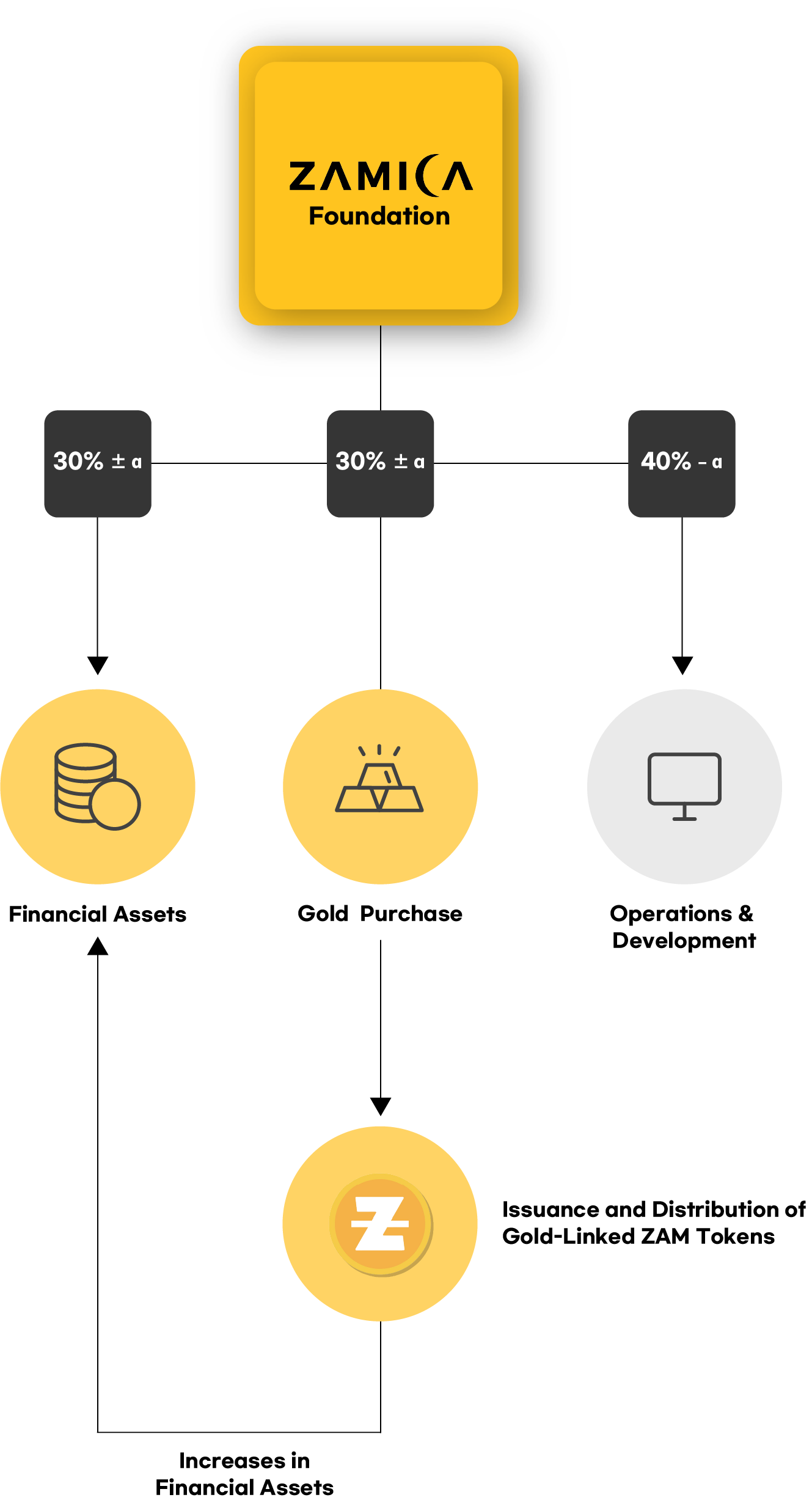 - The resulting returns are used to acquire gold assets and expand financial assets that serve as the underlying basis for issuing the gold-linked ZAM