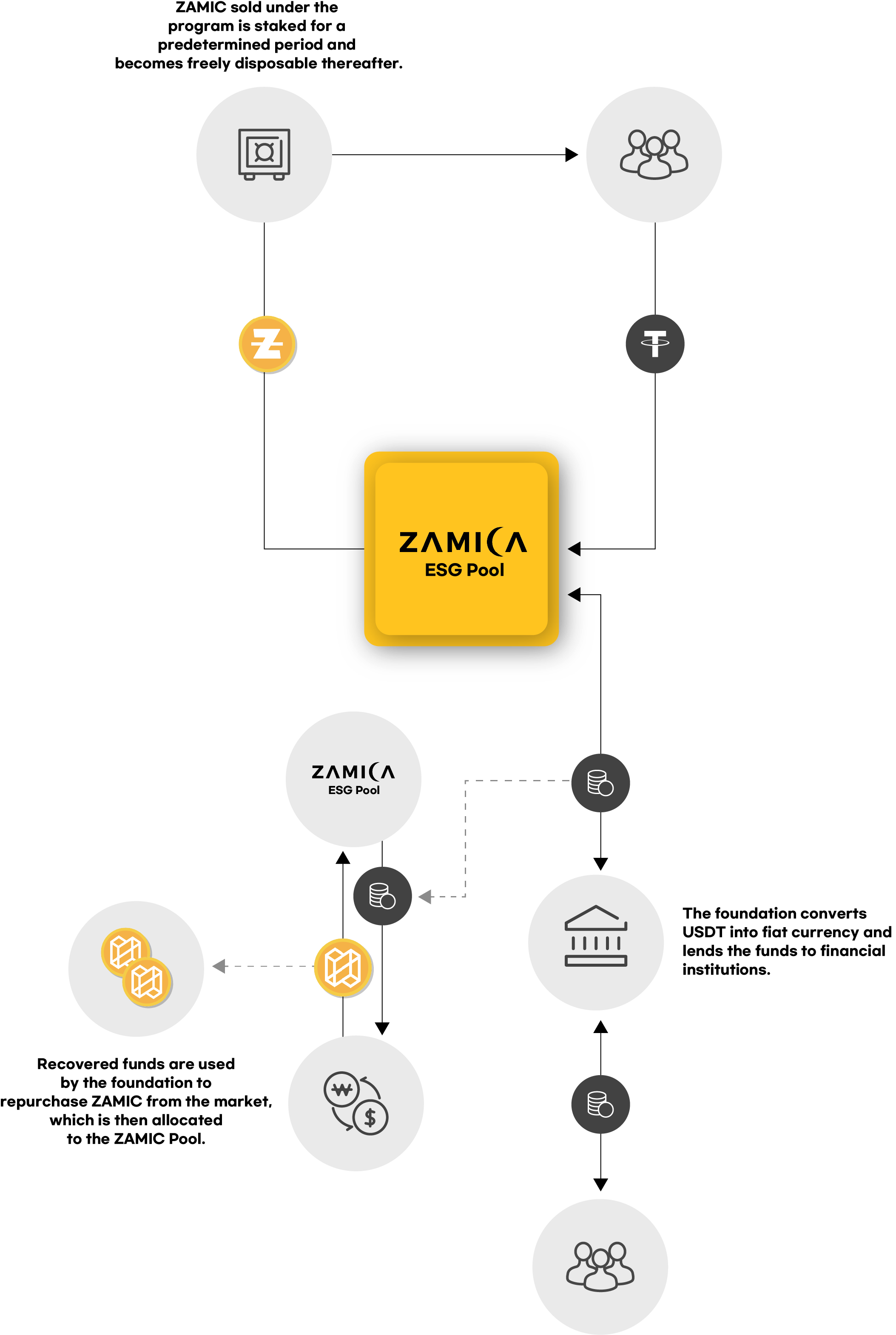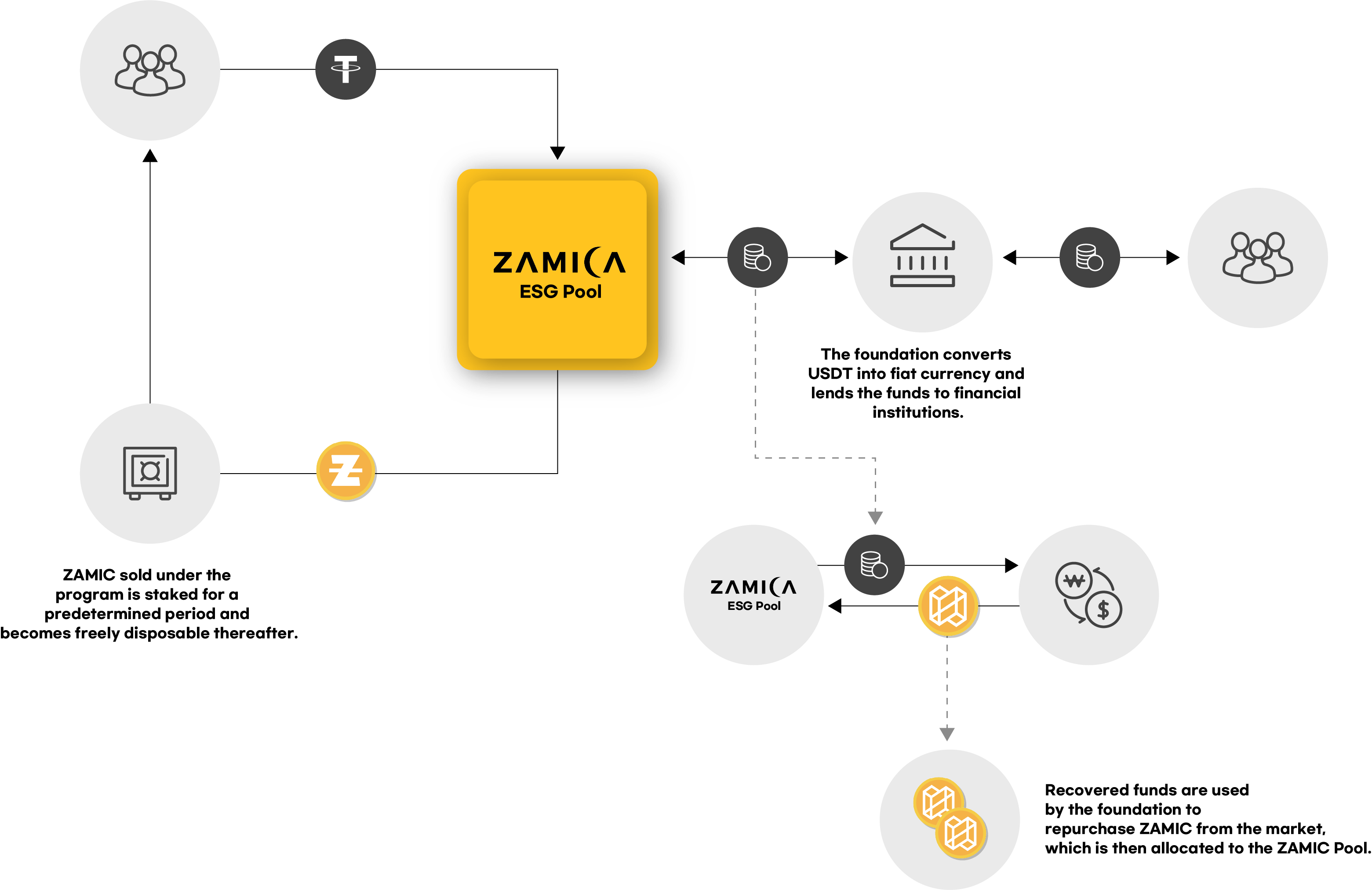 - Repurchased ZAMIC is returned to the ESG Pool and allocated to new donors.This controlled circulation supports sustained ZAMIC price stability