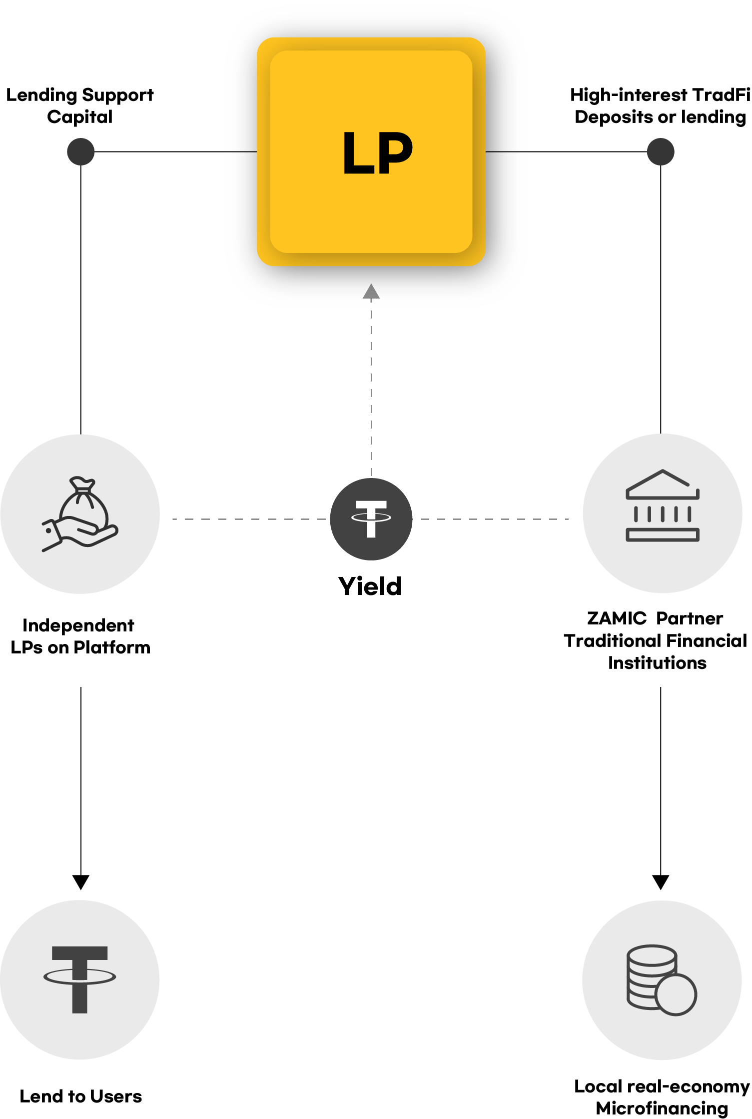 - A principal-recoverable donation pool is created through partnerships between the ZAMICA ecosystem and traditional financial institutions
